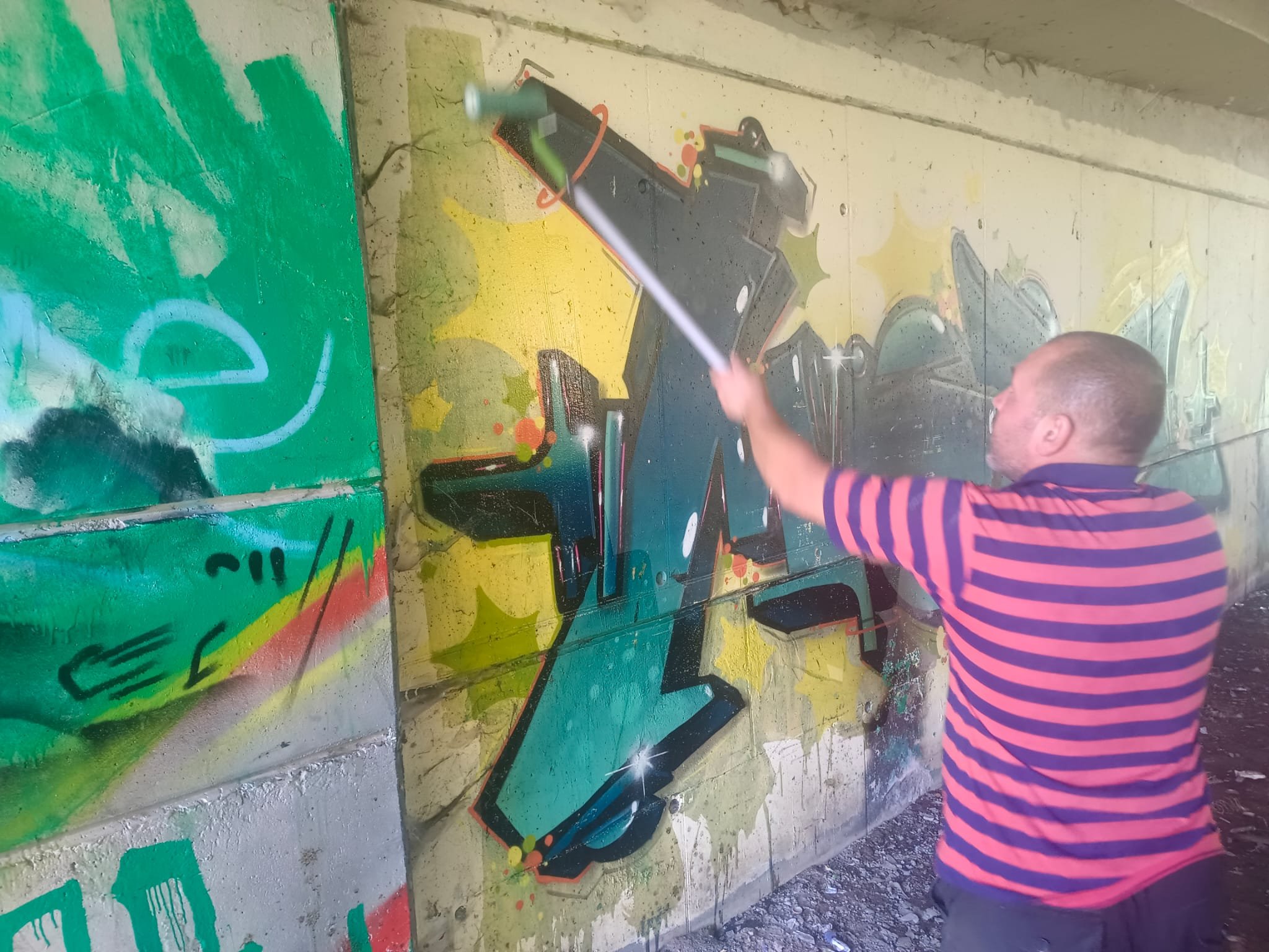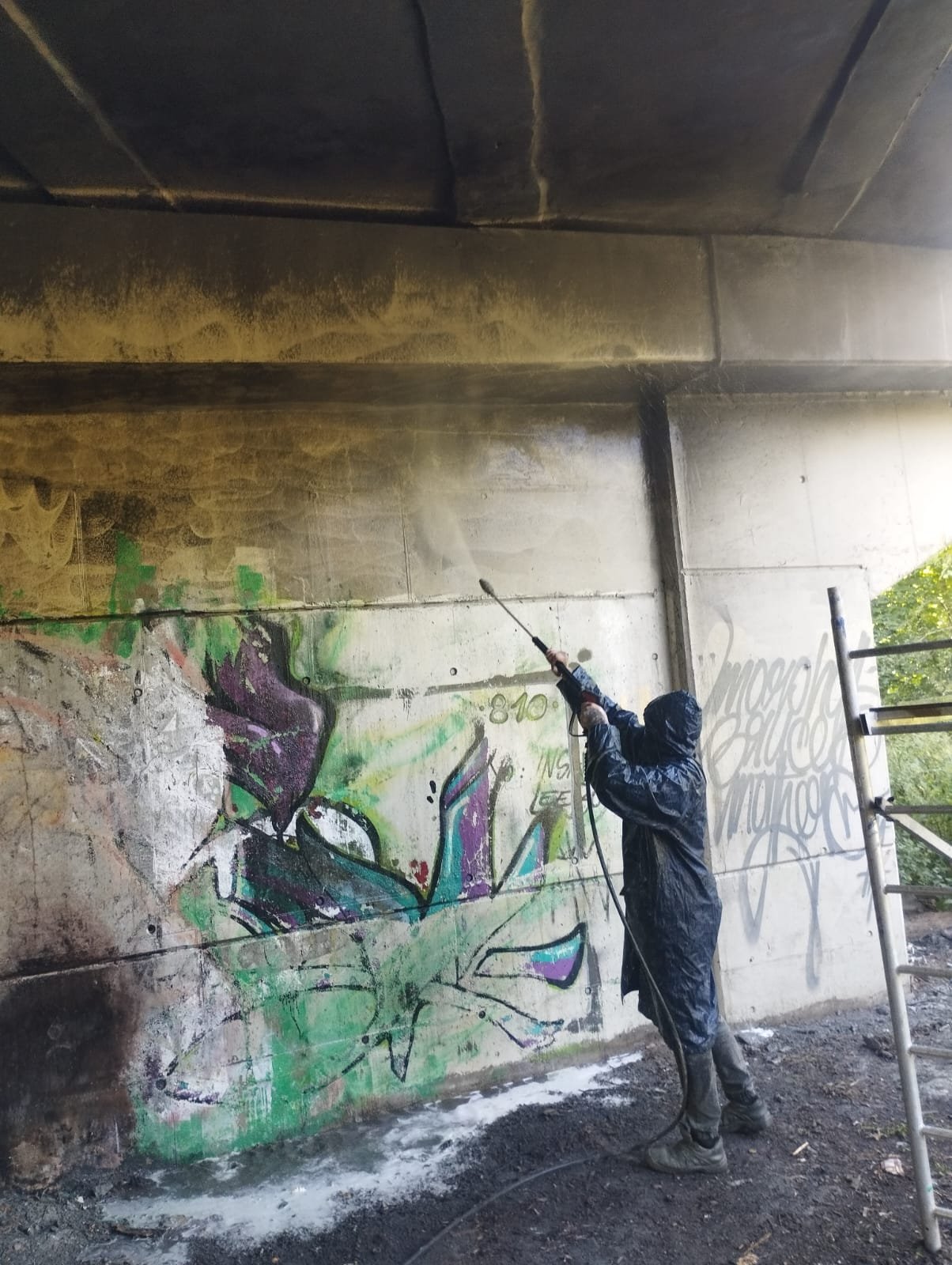 Odstranění graffiti ze spodní konstrukce mostu ev. č. 23-038 v Třebíči gelovým čističem BLUE GEL
